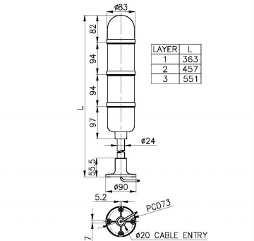 用一个安装空间传达多种信号的多层式警示灯