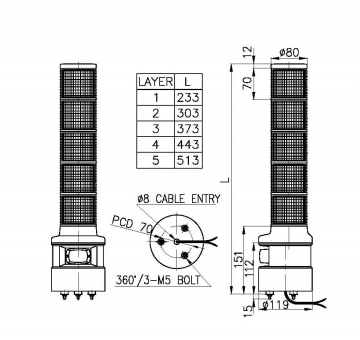 带高音量喇叭的 Ø80 灯泡型 多层式警示灯