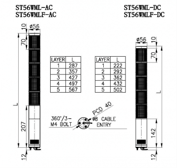 ST56WML 内装信号音 标准型 LED 多层信号灯