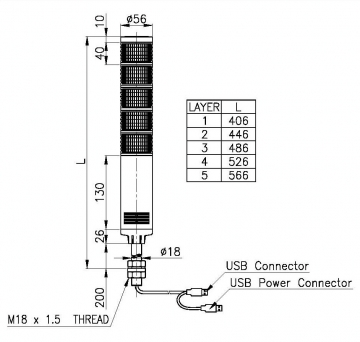 无需另外电源装置,可以使用USB接口连接到PC的USB LED 多层信号灯