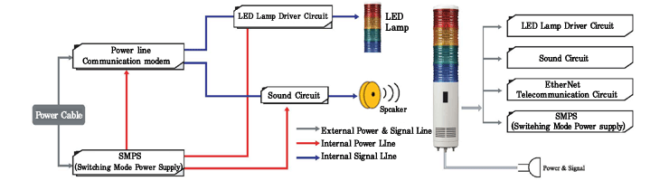 • 50m以内近距离不需要另外的信号线,利用电源线就可以控制多层信号灯