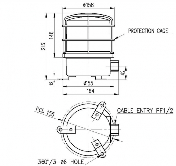 • 材质 : 灯罩-PC, 身体-DIECAST Al, 保护网-SUS316L