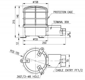 Ø150mm 大型重负荷、船舶用 灯泡 反射镜旋转 警示灯