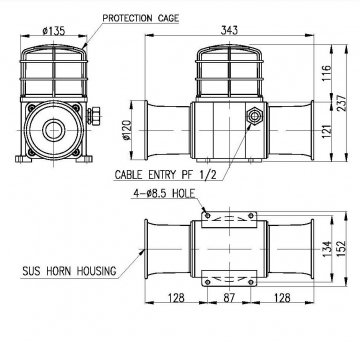 • 材质 : 灯罩-PC, 身体-DIECAST Al, 喇叭外壳-SUS316L, 反射镜-PC