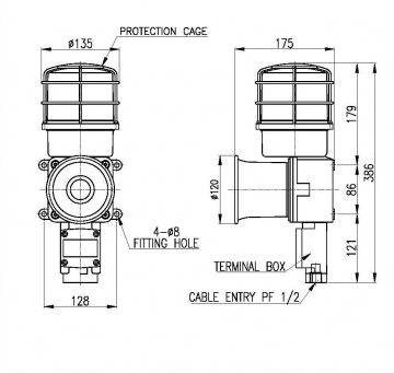 • 材质 : 灯罩-PC, 身体-DIECAST Al, 喇叭外壳-SUS316L, 反射镜-PC