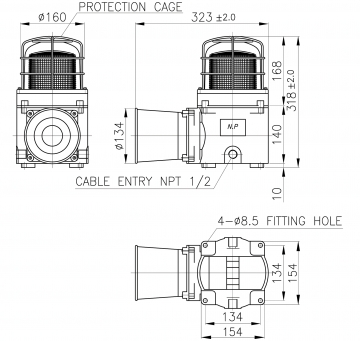 • 材质 : 灯罩-防爆钢化玻璃, 身体-DIECAST Al, 内部灯罩, 反射镜-PC, 保护网, 喇叭外壳-SUS316L