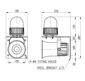 | 型号 | 警示灯形式 | 保护网 | 警示灯颜色 | 扬声器形式 | 音调 | 电压 |