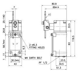 防水型行程开关-滚柱 传动杆型 SLP2130-R 铝合金 外壳