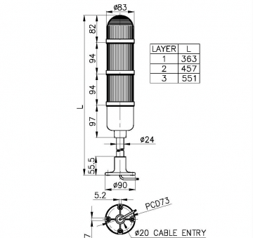 用一个安装空间传达多种信号的多层式LED警示灯