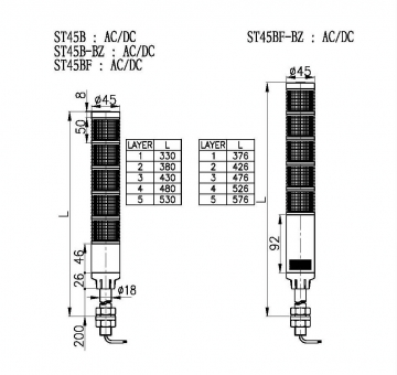 ST45B 灯泡 长亮/闪亮型 多层信号灯
