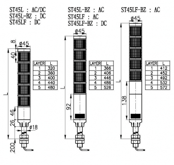 ST45L LED 长亮/闪亮型 多层信号灯