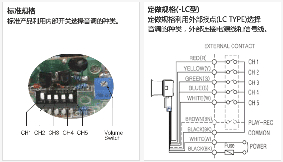 | 型号 | 音调 | 电压 | 选择音调 |