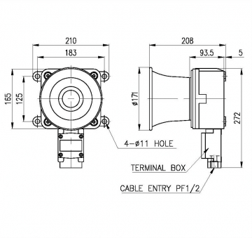 • 材质 : 身体-DIECAST Al, 喇叭外壳-SUS316L
