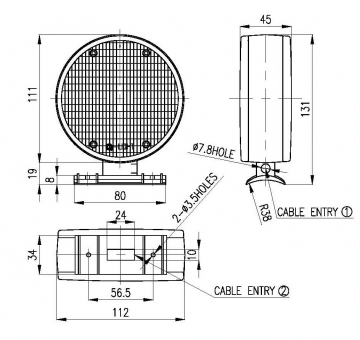 • 采用特殊散光灯罩,优秀可见度的 LED 双面警示灯
